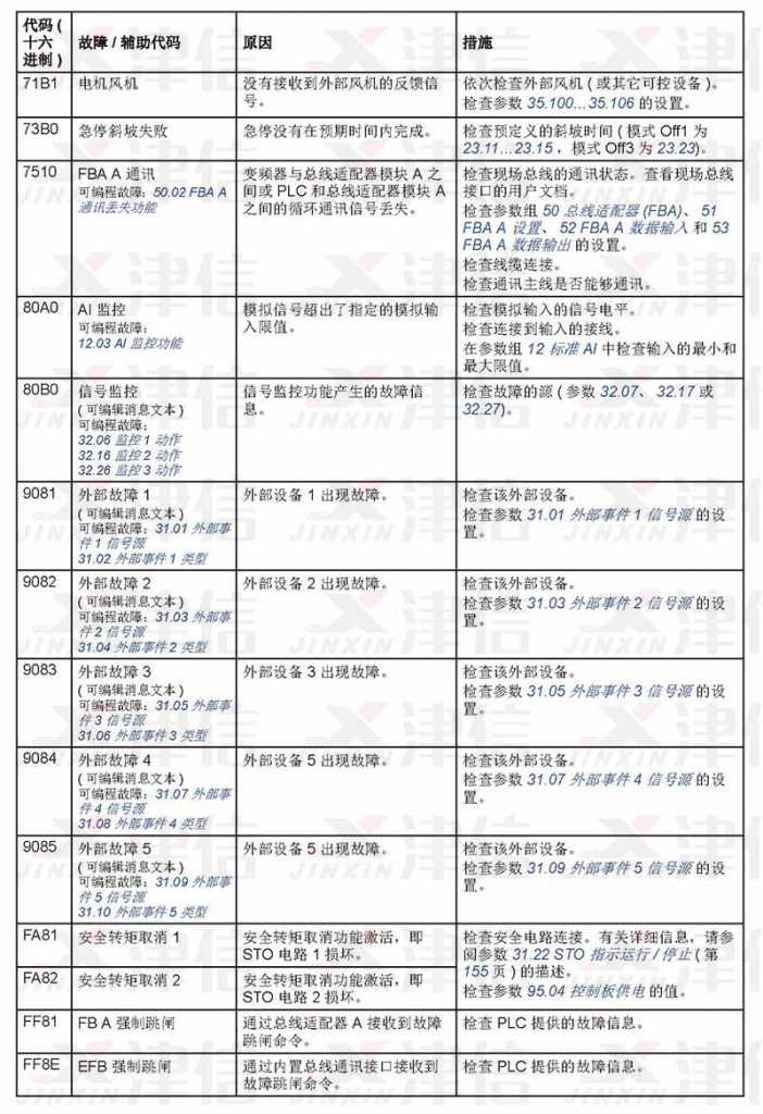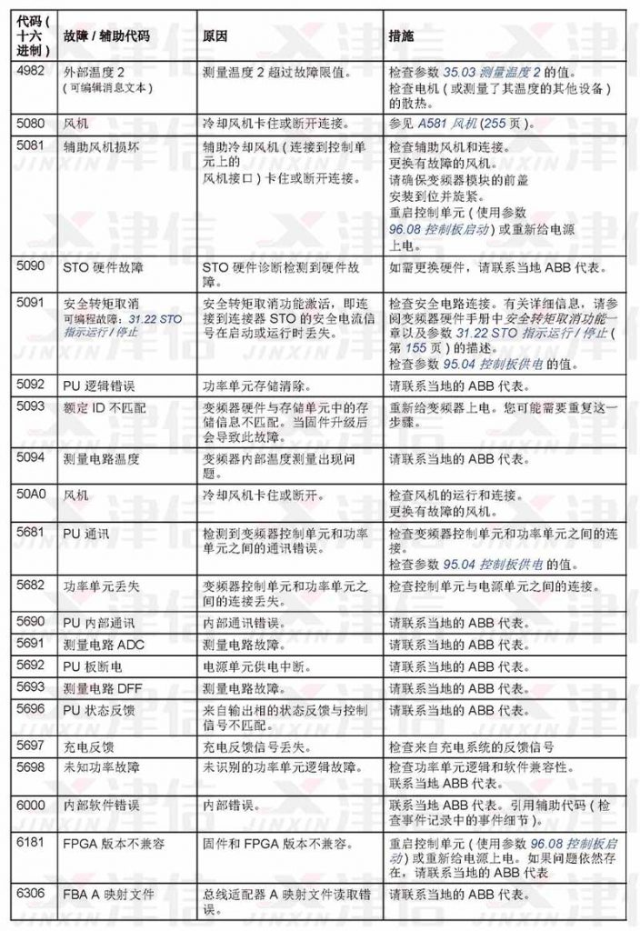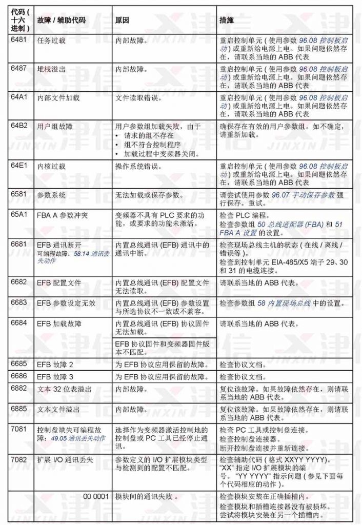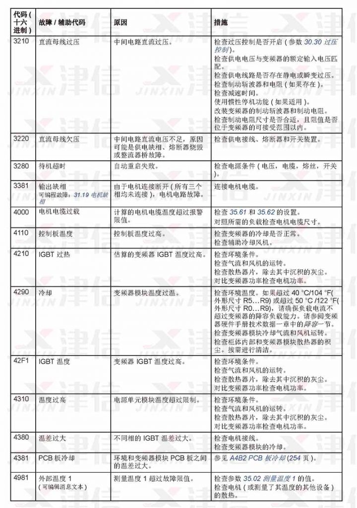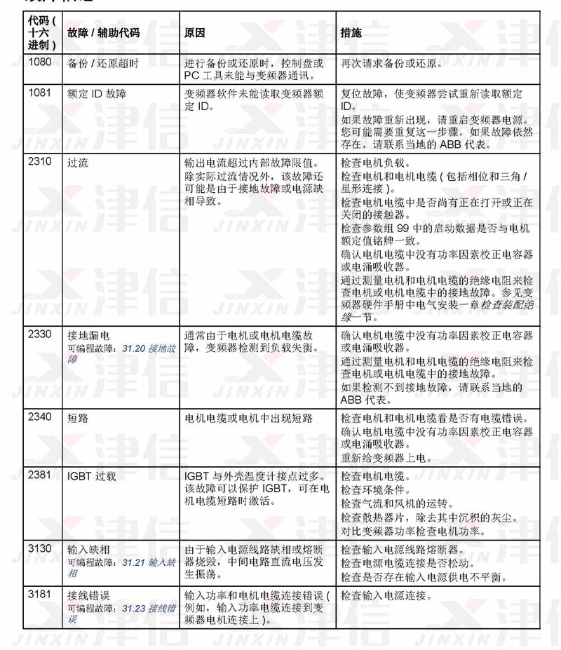 ABB ACS530在使用過(guò)程中遇到故障,可以通過(guò)以下故障代碼來(lái)對(duì)故障進(jìn)行分析,并采取相應(yīng)維修措施進(jìn)行修復(fù)。