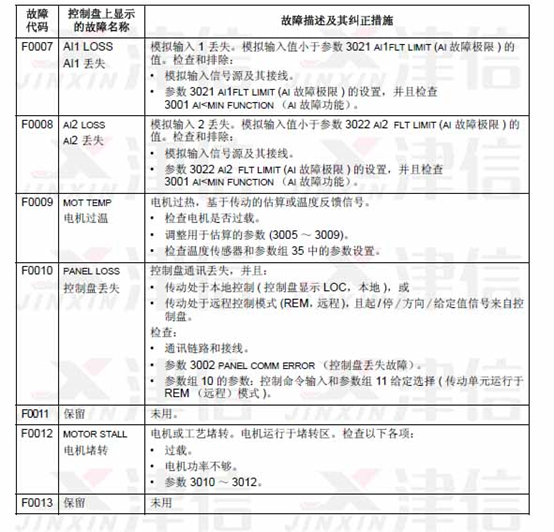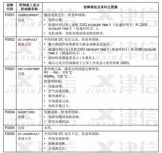 可以通過MENU/ENTER鍵來清除故障信息。如果故障依然存在,故障信息會在幾秒鐘后再次出現(xiàn)。此時需要根據(jù)故障代碼來進(jìn)行相應(yīng)的檢查和采取應(yīng)對措施。