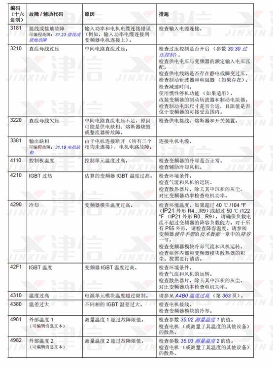 2、ABB ACS580變頻器故障代碼 3181,3210,3220,3381,4110,4210,4290,42F1,4310,4380,4981,4982