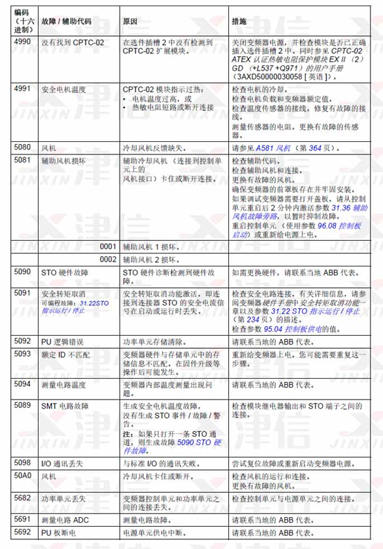 3、ABB ACS580變頻器故障代碼4990,4991,5080,5081,5090,5091,5092,5093,5094,5089,5098,50A0,5682,5691,5692
