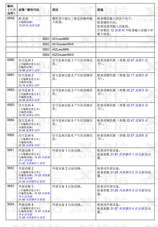 7、ABB ACS580變頻器故障代碼80A0,80B0,80B1,80B2,80B3,80B4,80B5,9081,9082,9083,9084