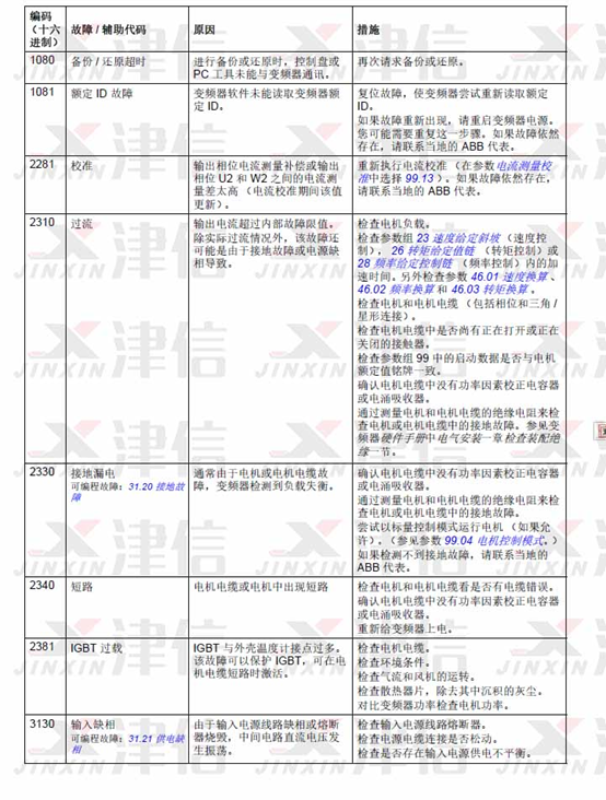 1、ABB ACS580變頻器故障代碼1080,1081,2281,2310,2330,2340,2381,3130