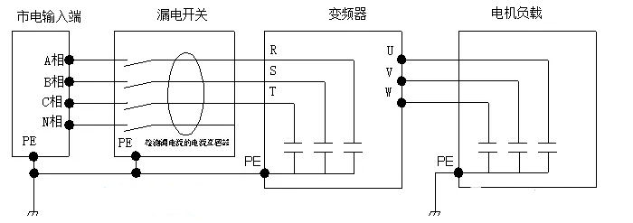 一個舊廠房里安裝設備,現(xiàn)場變頻器上電啟動一會后,配電箱里的塑殼斷路器就跳閘。老廠房120A的塑殼斷路器,自帶100ma的漏電保護,也是比較煩人,只能通過進線端引電。