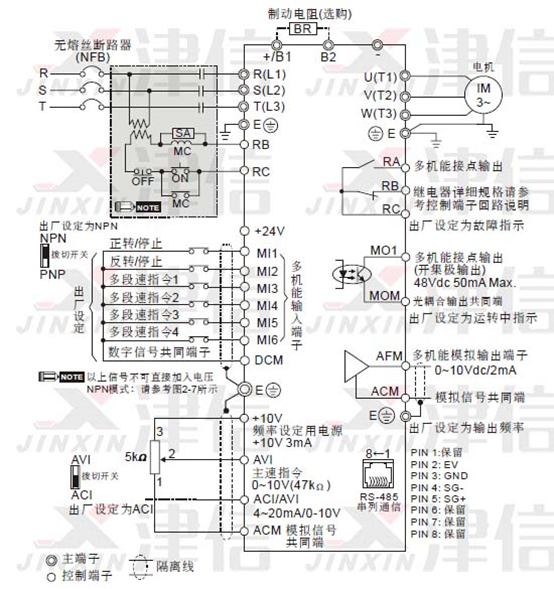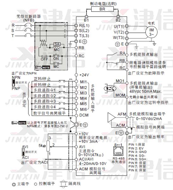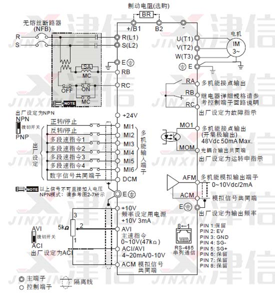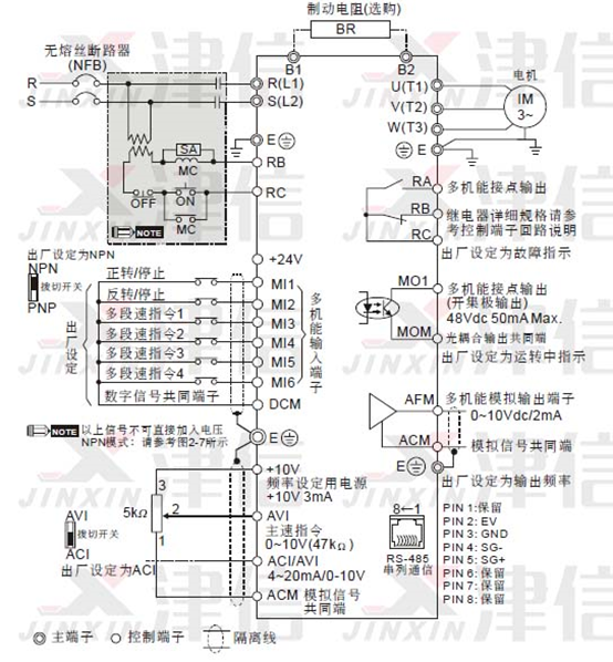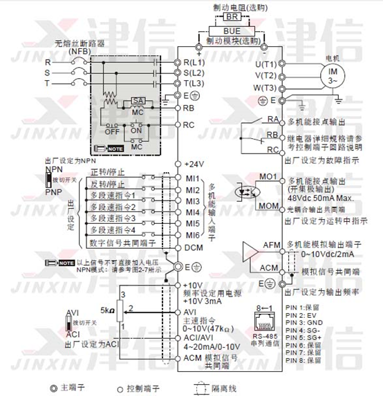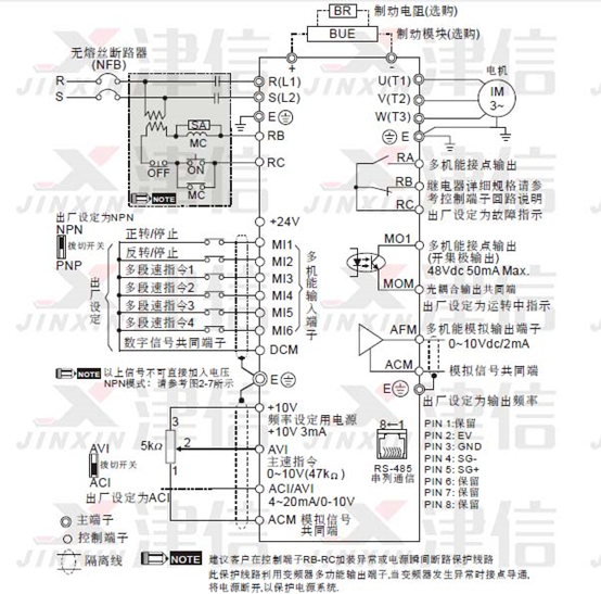 在臺達VFD-E變頻器安裝調(diào)試過程中,根據(jù)臺達VFD-E變頻器不同的型號,接線方式也略有不同,詳細(xì)如下: