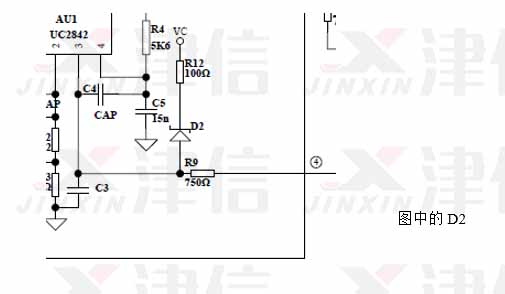 然后仔細(xì)察看開關(guān)電源的線路圖,發(fā)現(xiàn)在開關(guān)電源電流檢測端,UC3842的3腳,還接有另外一路保護,芯片電源腳經(jīng)過穩(wěn)壓管D2接到3腳,這部分線路應(yīng)該是開關(guān)電源自身的過壓保護。靜態(tài)測試穩(wěn)壓管特性良好,用穩(wěn)壓電源通電測量也正常,穩(wěn)壓值在21V左右(電源電壓17V),拆掉這個穩(wěn)壓管后給機器送電,測電流波形居然回到正常的0.3A。看來是這個穩(wěn)壓管特性不良引起的問題。重新安裝一個21V的穩(wěn)壓管,開機試運行一上午正常,沒有再出現(xiàn)以前的故障。最后送交客戶,經(jīng)幾天實際運行,工作正常,證明變頻器已完全修復(fù)。