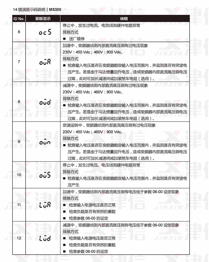 臺達變頻器OCS,OUA,OUD,OUN,LUR等故障