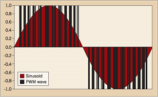 脈波寬度調(diào)變(PWM)變頻器是工業(yè)中最常用的,因為固定的直流母線電壓具有出色的輸入功率因數(shù),沒有電機齒槽效應(yīng),效率更高,成本更低。PWM 變頻器使用一系列不同長度的電壓脈沖來模擬正弦波。理想情況下,脈沖定時,以便驅(qū)動器的時間平均積分產(chǎn)生完美的正弦曲線。產(chǎn)生該波形的當(dāng)前選擇方法是通過比較器運行三角波和正弦波,并且只要正弦波的值大于三角波,就輸出電壓脈沖。用于產(chǎn)生電壓脈沖的當(dāng)前電氣元件是絕緣柵雙極晶體管(IGBT),盡管可控硅整流器(SCR)也可以工作。在不久的將來,注入增強型柵極晶體管(IEGT)將用于執(zhí)行此任務(wù)。更長遠(yuǎn)來說,憶阻器可能會成為這項任務(wù)的首選組成部分。