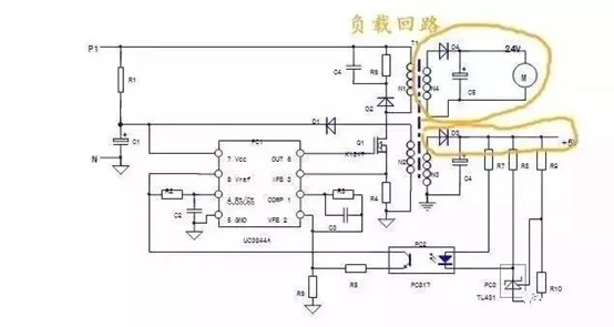 4、負載回路:N3,N4二次繞組及后續(xù)電路,均為負載回路,負載回路的異常,會牽涉到保護回路和穩(wěn)壓回路,使兩個回路做出相應(yīng)的保護和調(diào)整動作。