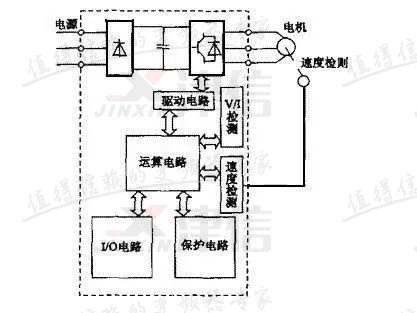 運(yùn)算電路程的作用是將外部的速度、轉(zhuǎn)矩等指令同檢測(cè)電路的電流、電壓信號(hào)進(jìn)行比較運(yùn)算,決定逆變器的輸出電壓、頻率。