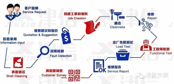 但在這個(gè)過(guò)程中,返修問(wèn)題也始終伴隨津信服務(wù)業(yè)務(wù)發(fā)展而一直存在。為了實(shí)現(xiàn)對(duì)客戶“值得信賴的變頻器專家”承諾,2014年6月開(kāi)始,上海津信在提高服務(wù)質(zhì)量方面做了大量嘗試。