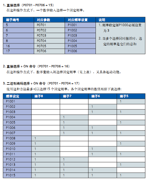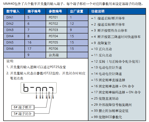 - P0703=1 ? ? 7號端子 ? ?數(shù)字輸入3的功能,ON/OFF1(接通正轉(zhuǎn)/停車命令1)