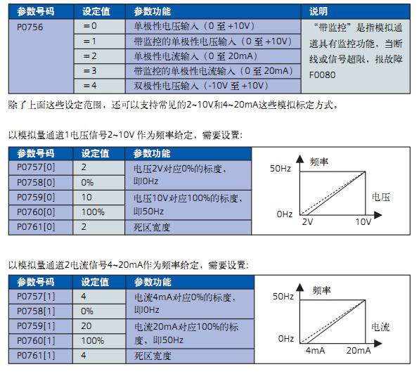 - P1000=2 ? ? ? ?頻率設(shè)定值的選擇:模擬量給定